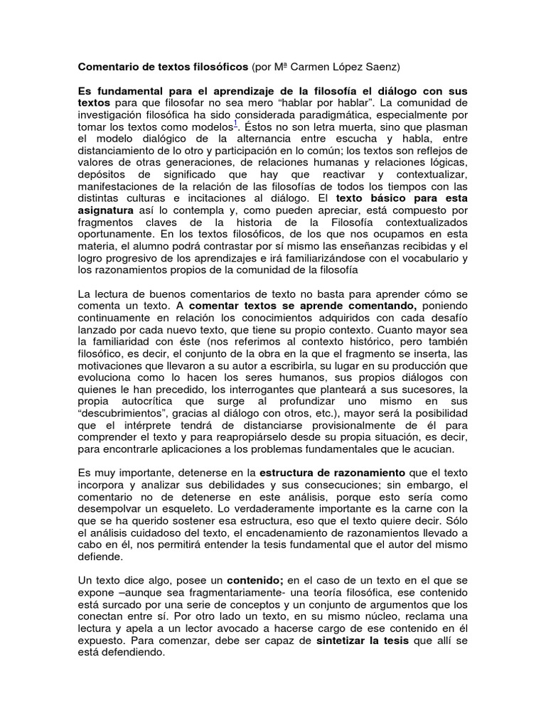 Comentario de textos filosficos (por M Carmen Lpez Saenz)