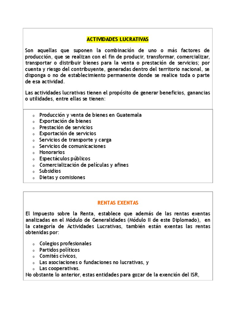 la categora de Actividades Lucrativas, tambin estn exentas las rentas