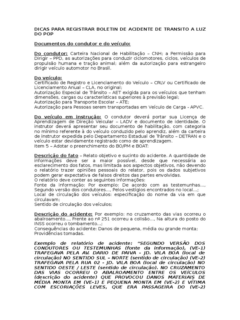 Exemplo de relatrio de acidente: SEGUNDO VERSO DOS