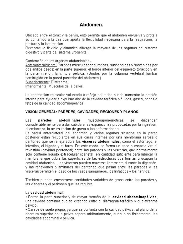 Para una descripcin clnica ms general, la cavidad abdominal se divide en