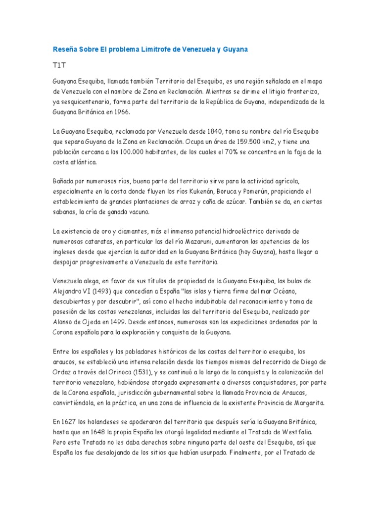 Resea Sobre El problema Limitrofe de Venezuela y Guyana