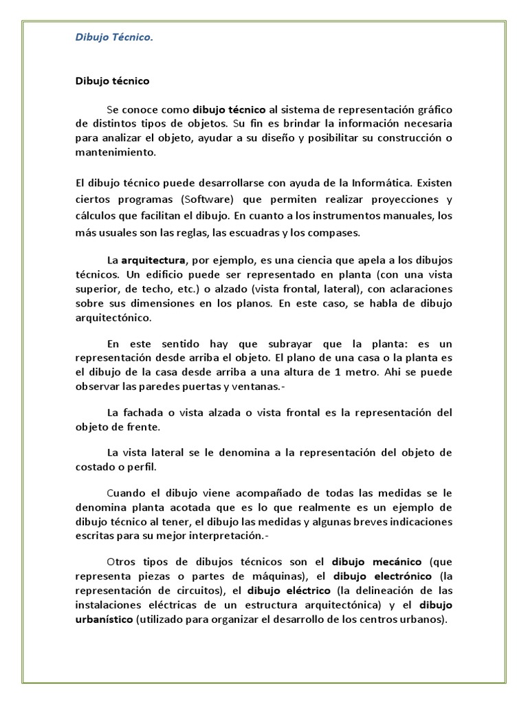 escritas para su mejor interpretacin.Otros tipos de dibujos tcnicos son el dibujo mecnico (que
