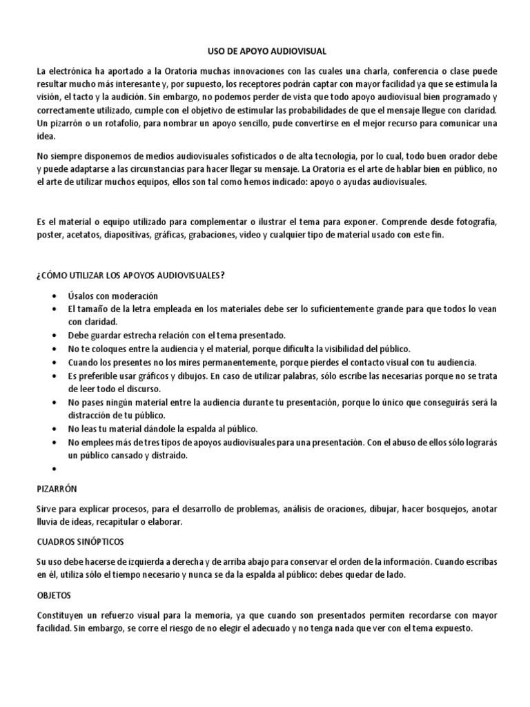 No siempre disponemos de medios audiovisuales sofisticados o de alta tecnologa, por lo cual, todo buen orador debe