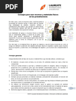 conciso. Distribuye las notas o el informe al final de la presentacin para que la audiencia pueda retomarlo con