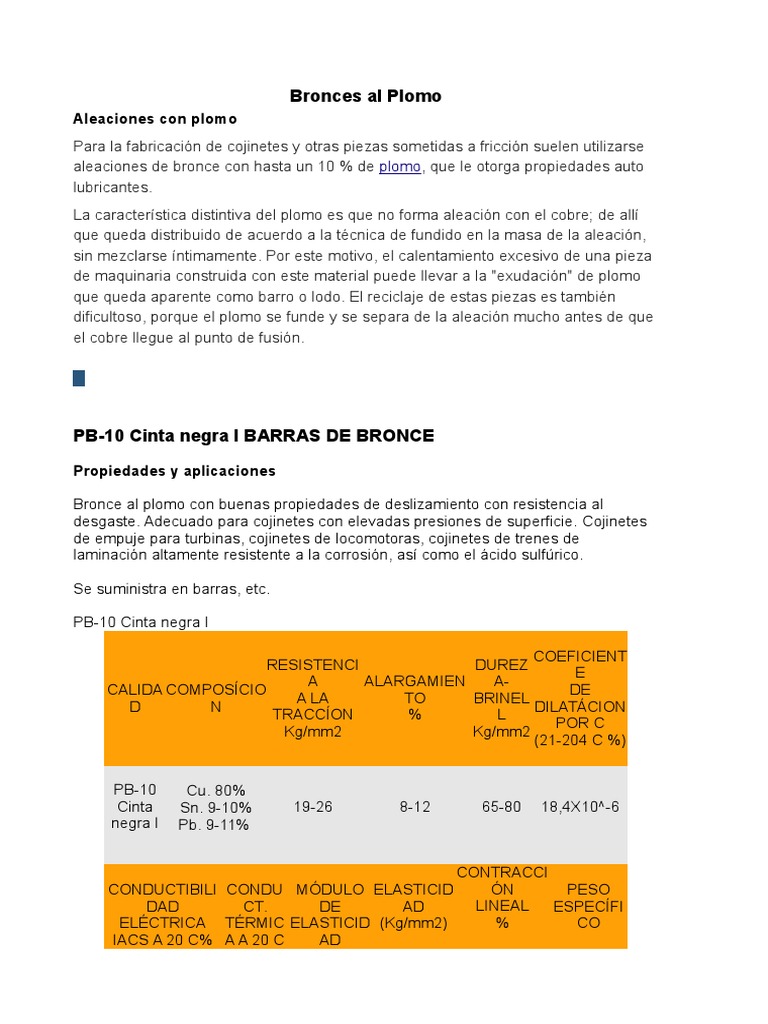 aleaciones de bronce con hasta un 10 % de plomo, que le otorga propiedades auto