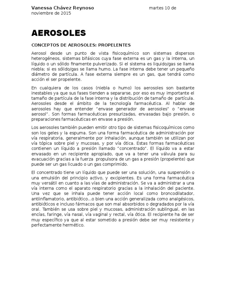 aerosol. Son formas farmacuticas presurizadas, envasadas bajo presin, o