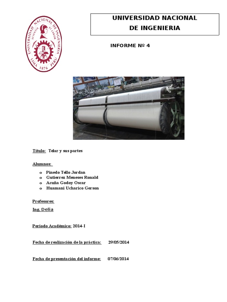 INFORME SOBRE TELAR Y SUS PARTES