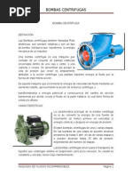 Una bomba centrifuga es una maquina que convierte la potencia de entrada (rotativa, motor) en energa