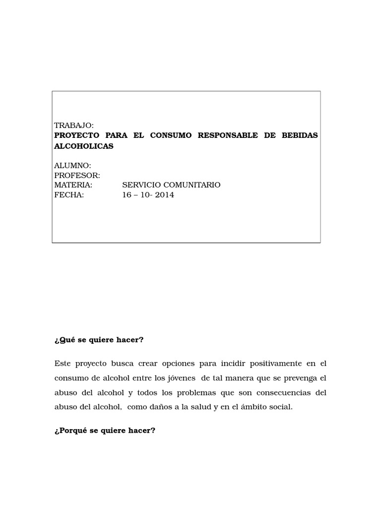 El proyecto de prevencin del alcoholismo en jvenes es importante por