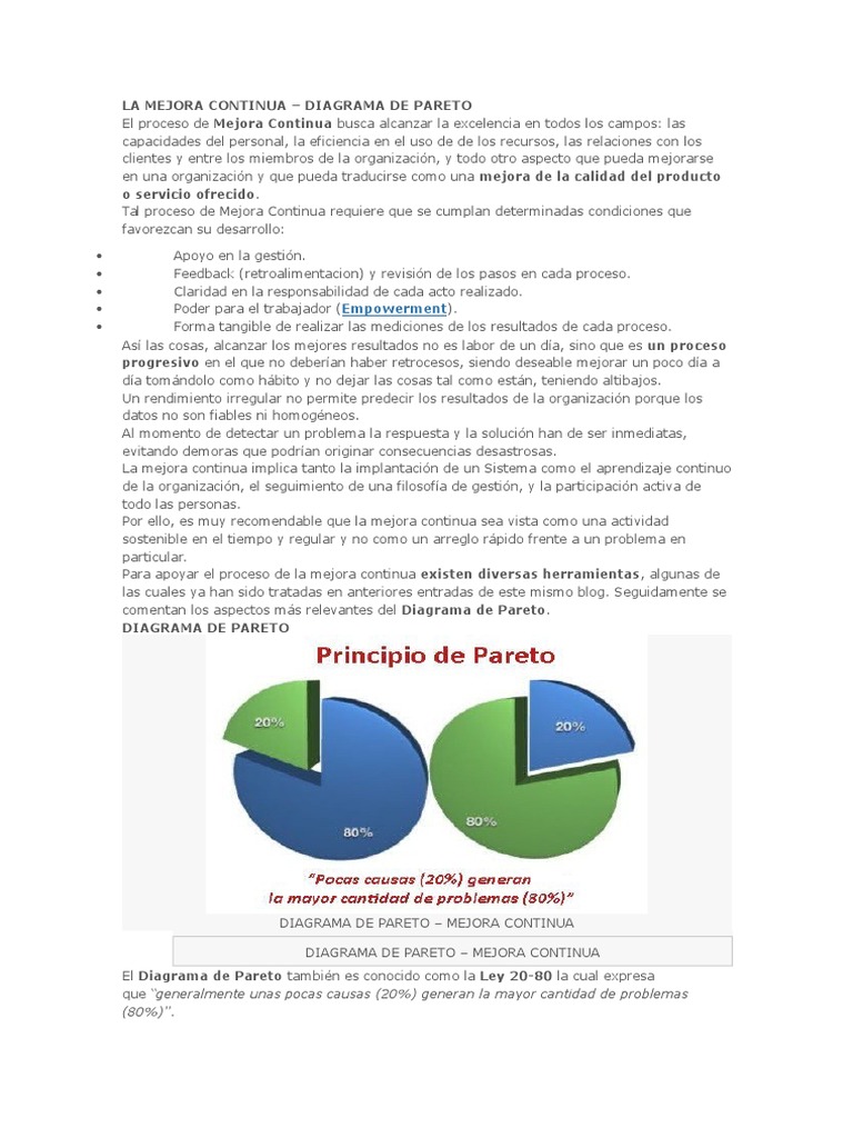 LA MEJORA CONTINUA DIAGRAMA DE PARETO