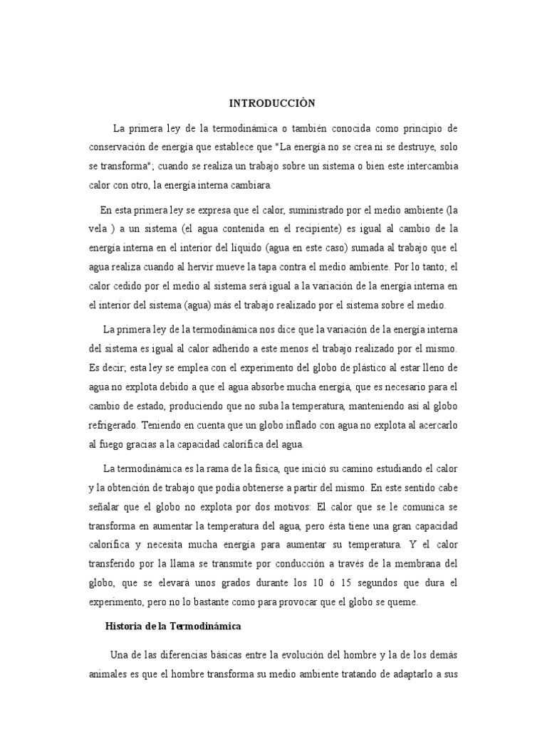 termodinmica permiti que el globo no explotara ya que el agua posee propiedades