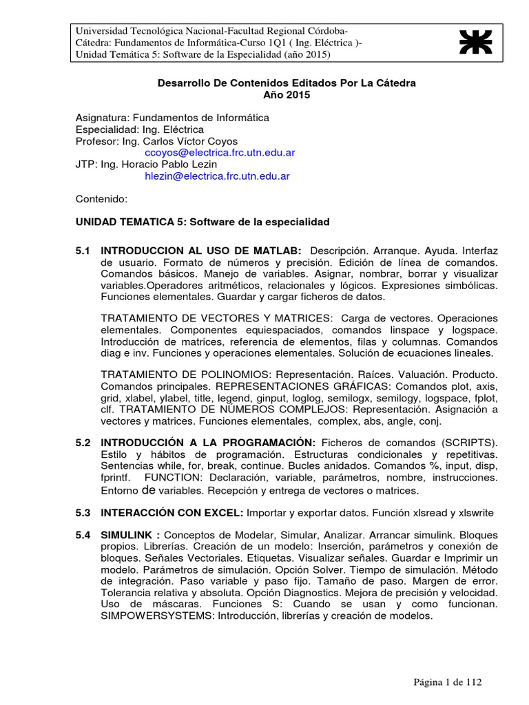 Universidad Tecnolgica Nacional-Facultad Regional CrdobaCtedra: Fundamentos de Informtica-Curso 1Q1 ( Ing. Elctrica )Unidad Temtica 5: Software de la Especialidad (ao 2015)