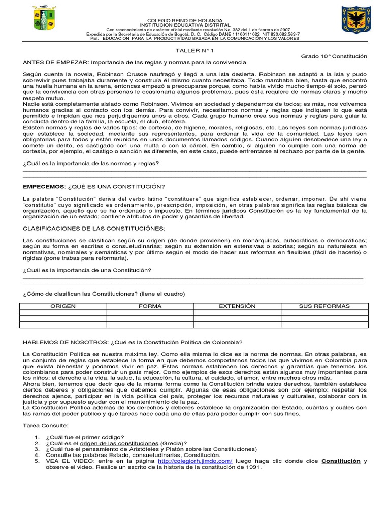 VEA EL VIDEO: entre en la pgina http://colegiorh.jimdo.com/ luego haga clic donde dice Constitucin y