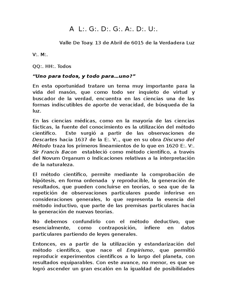 Mtodo traza los primeros lineamientos de lo que en 1620 E:. V:.