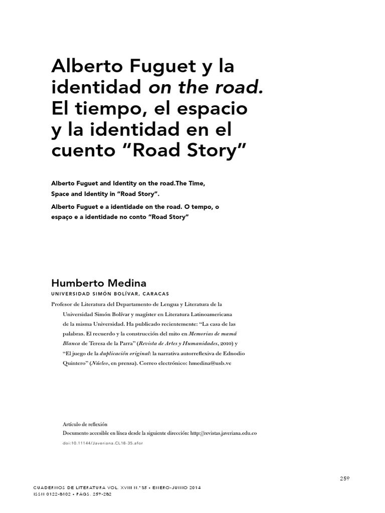 Alberto Fuguet e a identidade on the road. O tempo, o