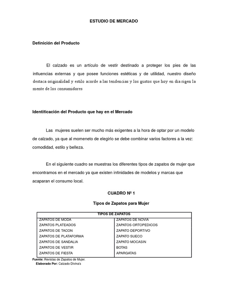 En el siguiente cuadro se muestras los diferentes tipos de zapatos de mujer que