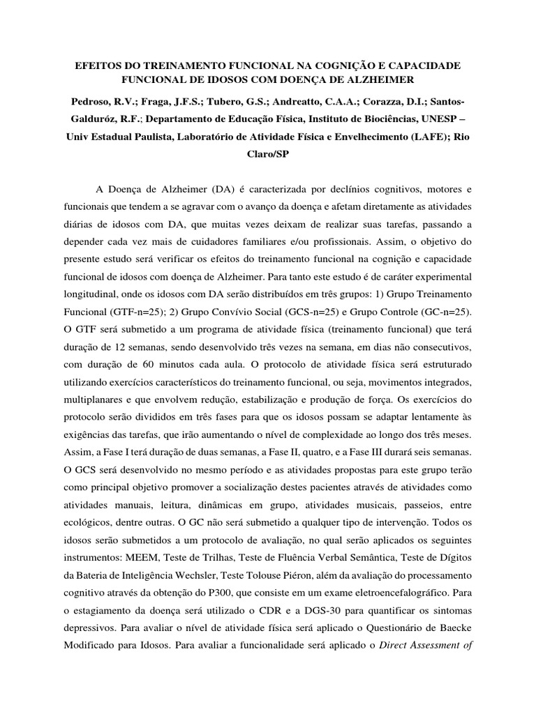 presente estudo ser verificar os efeitos do treinamento funcional na cognio e capacidade