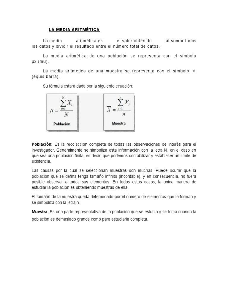 La media aritmtica de una poblacin se representa con el smbolo