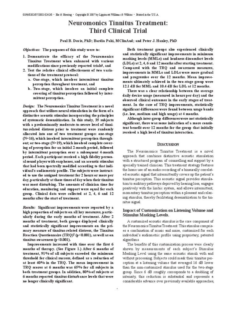 Design: The Neuromonics Tinnitus Treatment is a novel ment. In the case of TRQ improvements, statistically