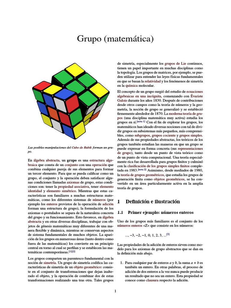 Grupo (matemtica) Fuente: https://es.wikipedia.org/wiki/Grupo_(matem%C3%A1tica)?oldid=91284302 Colaboradores: Pino, Joseaperez, Fibonacci, Moriel, SpeedyGonzalez, Robbot, Sanbec, Isomorsmo, Zwobot, Sms, Elwikipedista, Tano4595, Dianai, Alonso de