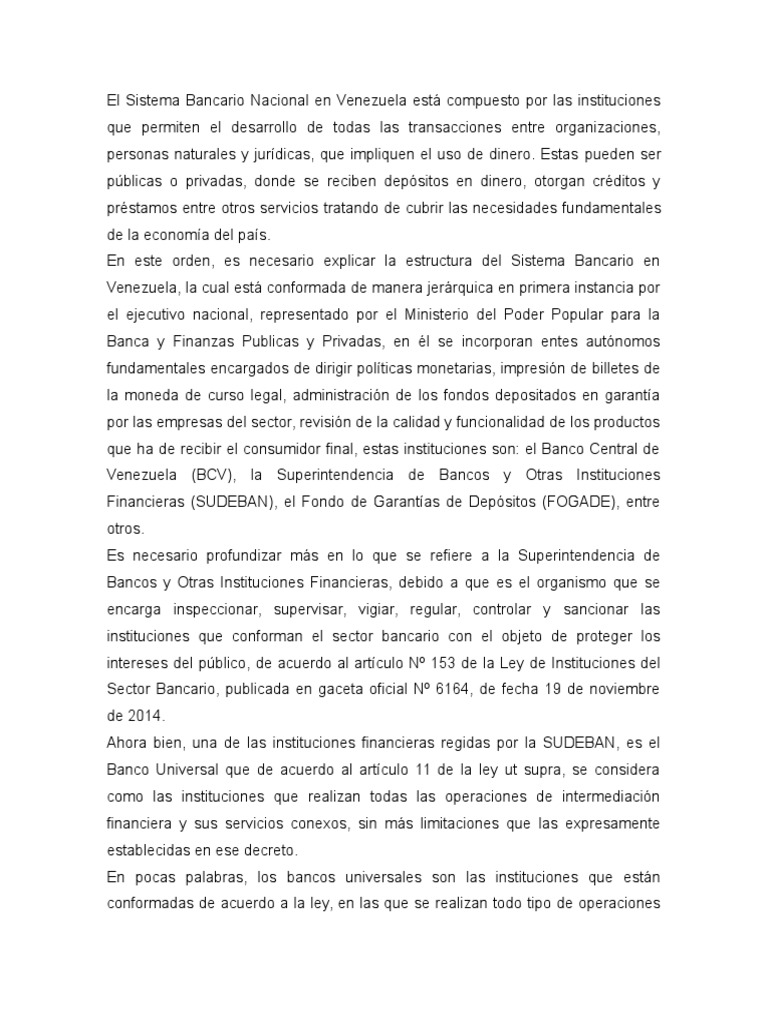 Sector Bancario, publicada en gaceta oficial N 6164, de fecha 19 de noviembre