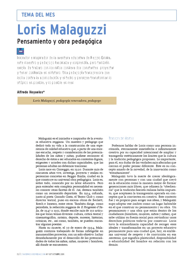 Loris Malaguzzi, pedagoga renovadora, pedagogo