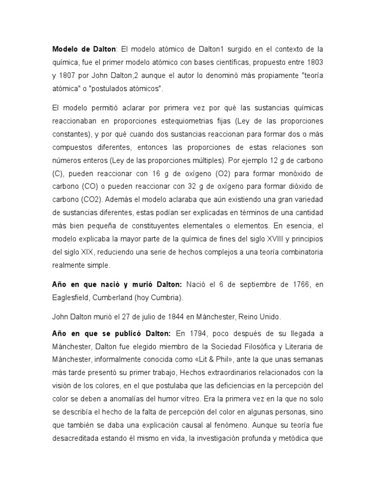 Modelo de Dalton: El modelo atmico de Dalton1 surgido en el contexto de la