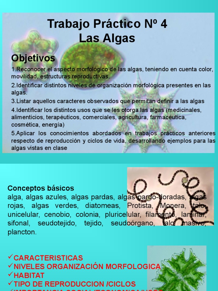 3.Listar aquellos caracteres observados que permitan definir a las algas