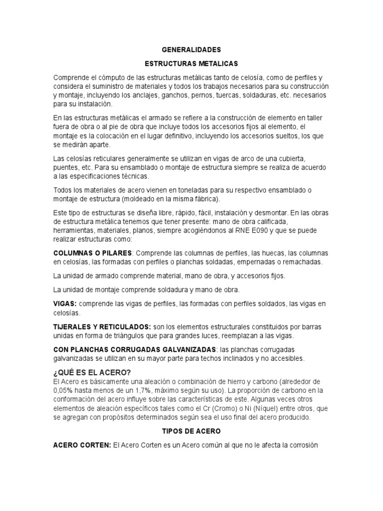 Comprende el cmputo de las estructuras metlicas tanto de celosa, como de perfiles y