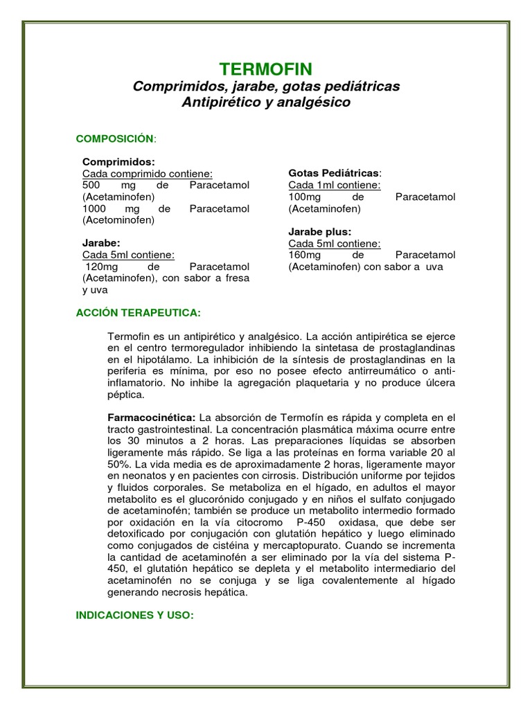 Termofin es un antipirtico y analgsico. La accin antipirtica se ejerce