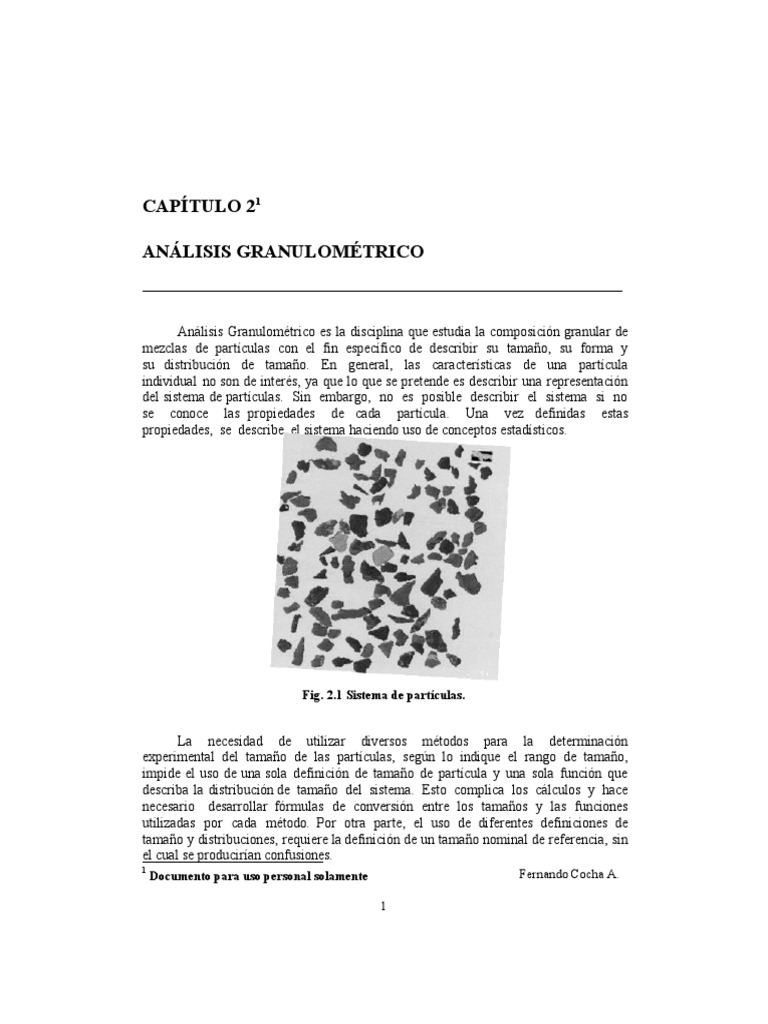2.1 DESCRIPCIN DEL TAMAO Y FORMA DE UNA PARTCULA