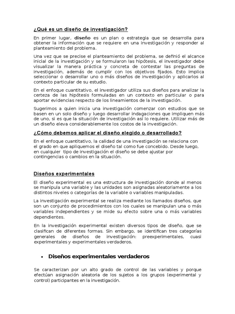 La investigacin experimental se realiza mediante los llamados diseos, que