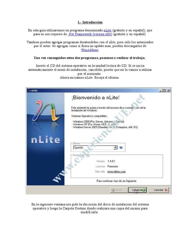 En esta guia utilizaremos un programa denominado nLite (gratuito y en espaol), que
