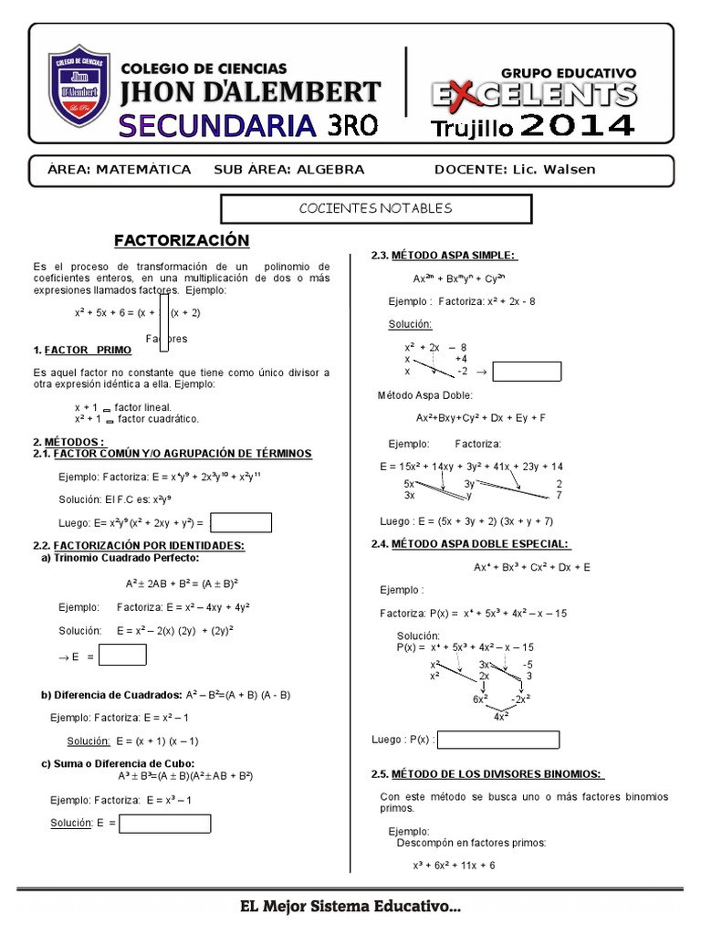 2.2. FACTORIZACIN POR IDENTIDADES:
