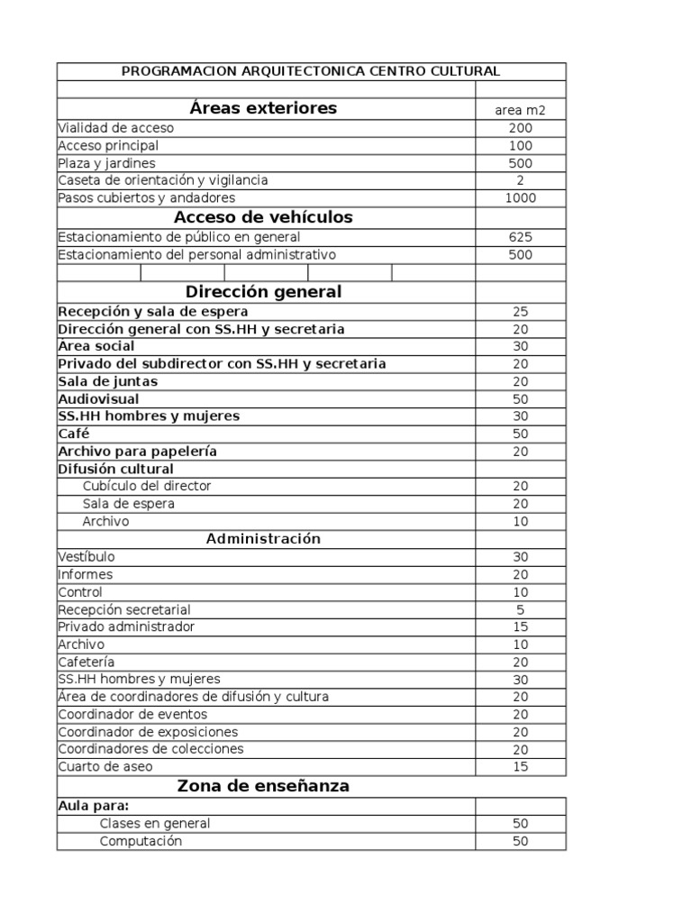 PROGRAMACION ARQUITECTONICA CENTRO CULTURAL