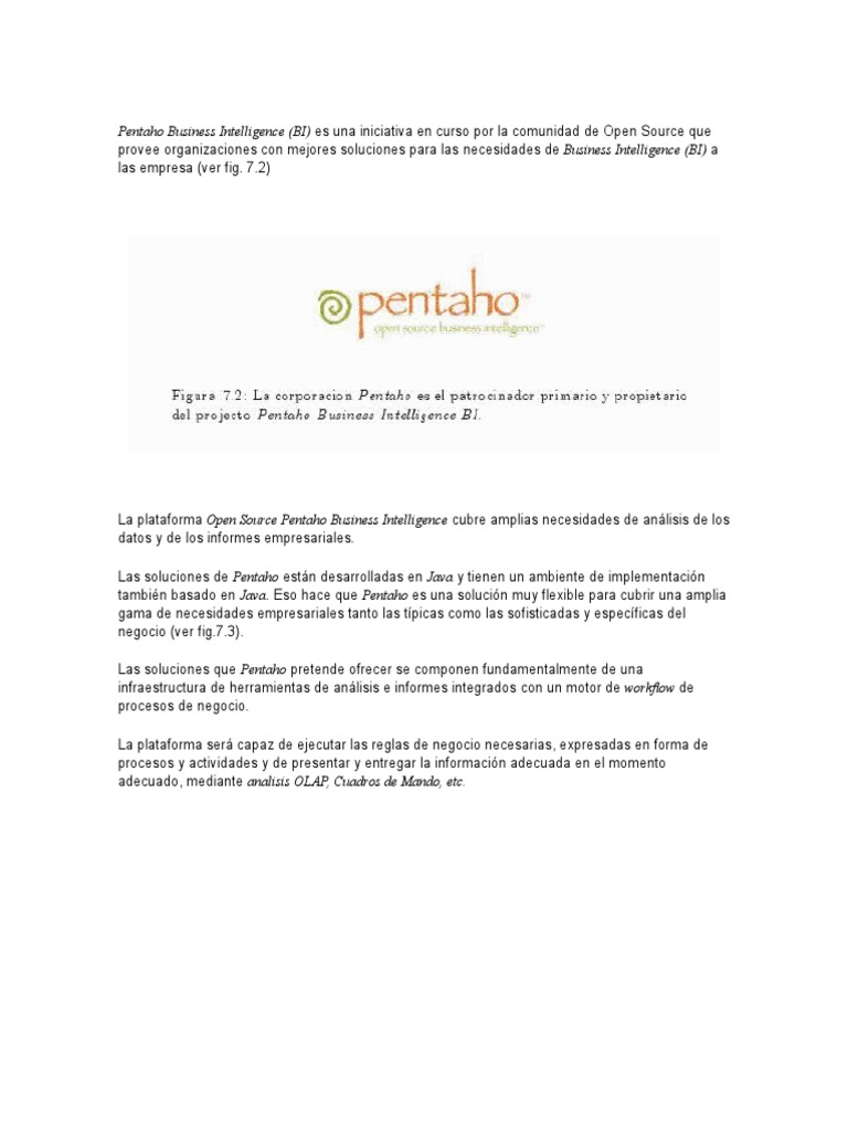tambin basado en Java. Eso hace que Pentaho es una solucin muy exible para cubrir una amplia