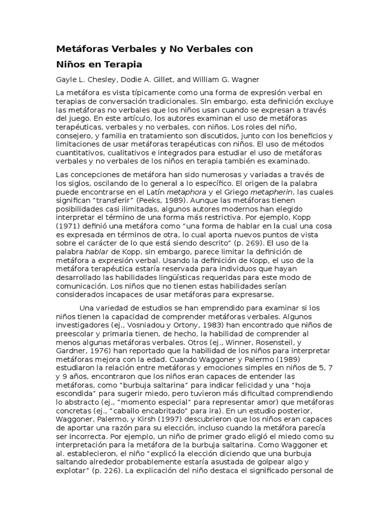 metforas de los nios. Dale y Wagner (2003) condujeron lo que debe ser