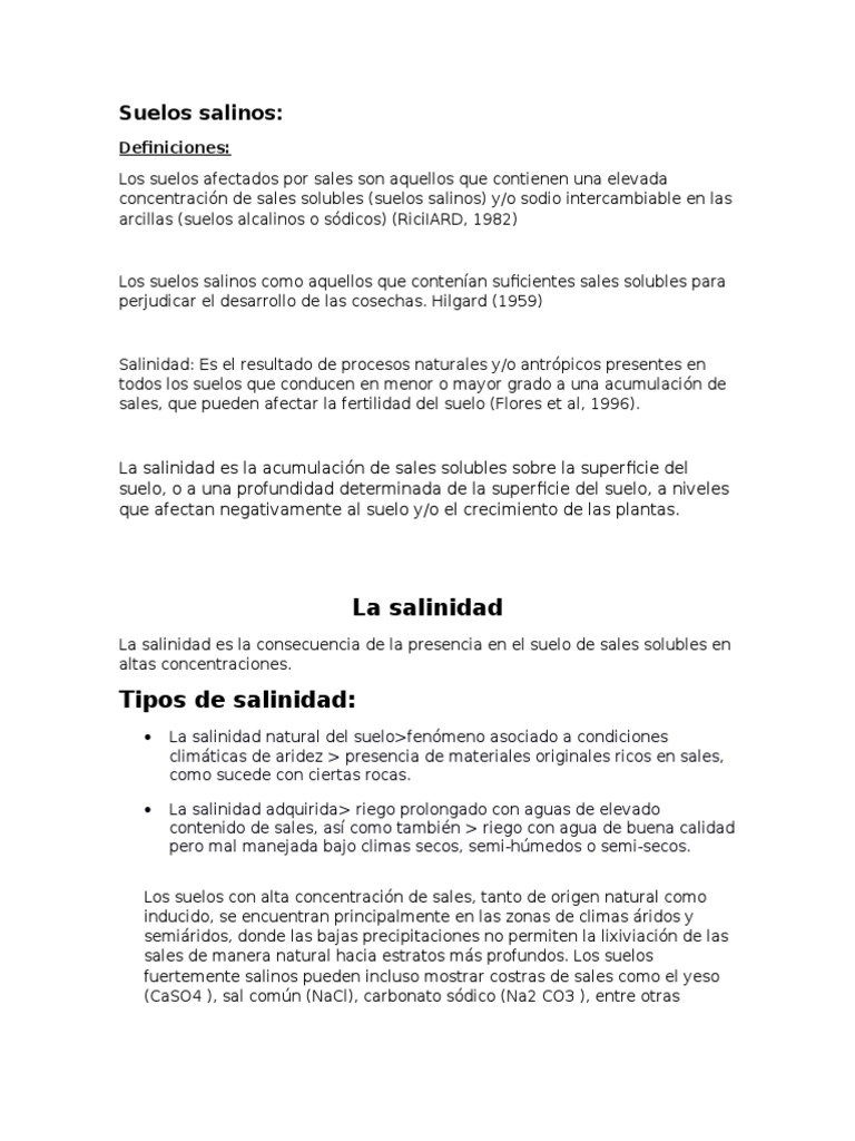 Los suelos con alta concentracin de sales, tanto de origen natural como