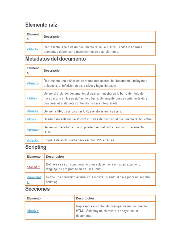 enlaces a, o definiciones de, scripts y hojas de estilo.