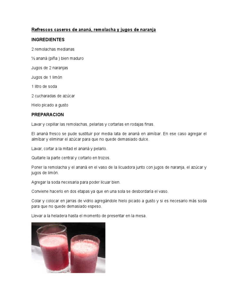 Refrescos caseros de anan, remolacha y jugos de naranja