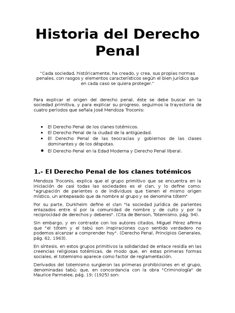 El Derecho Penal en la Edad Moderna y Derecho Penal liberal.