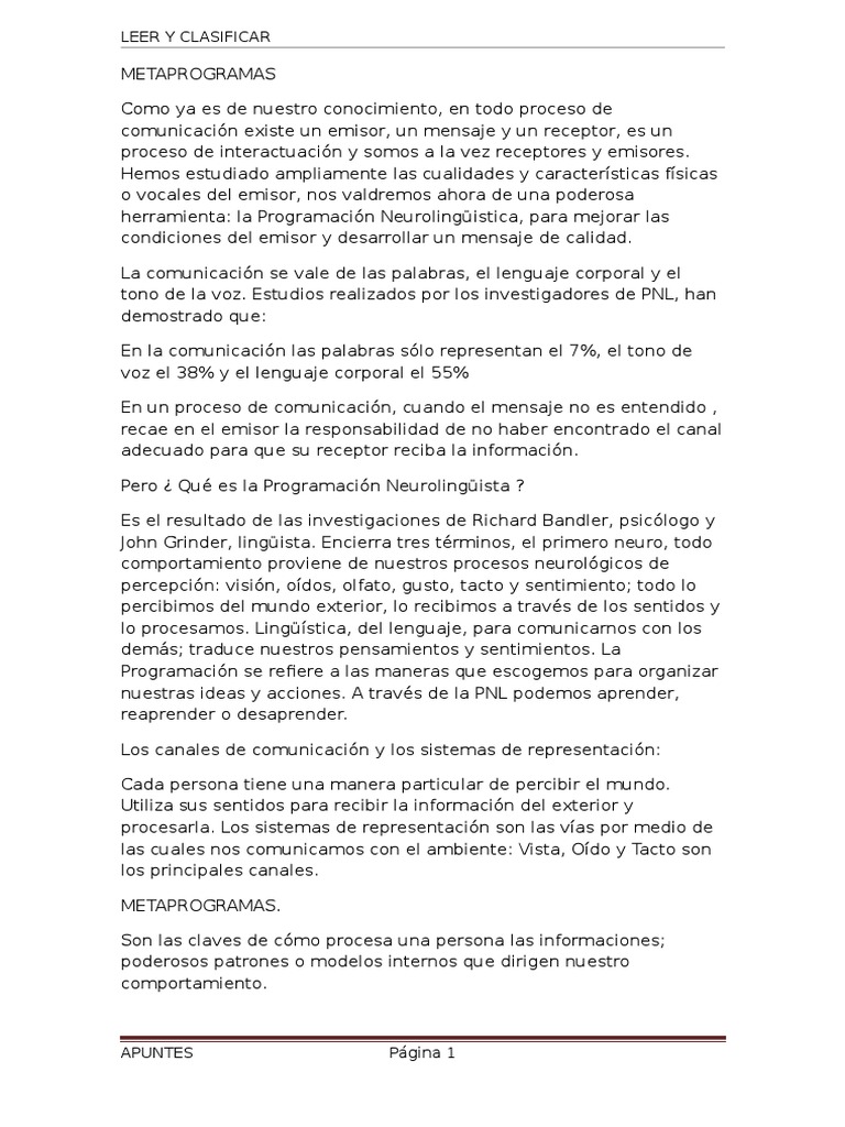 Los metaprogramas determinan igualmente hacia dnde dirigimos
