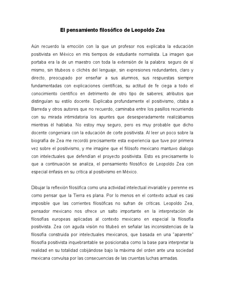 imposible que las corrientes filosficas no sufran de crticas. Leopoldo Zea,