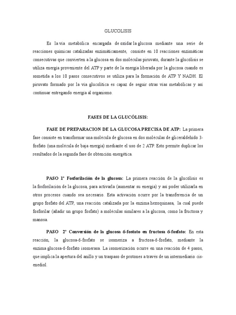 consecutivas que convierten a la glucosa en dos molculas piruvato, durante la gluclisis se