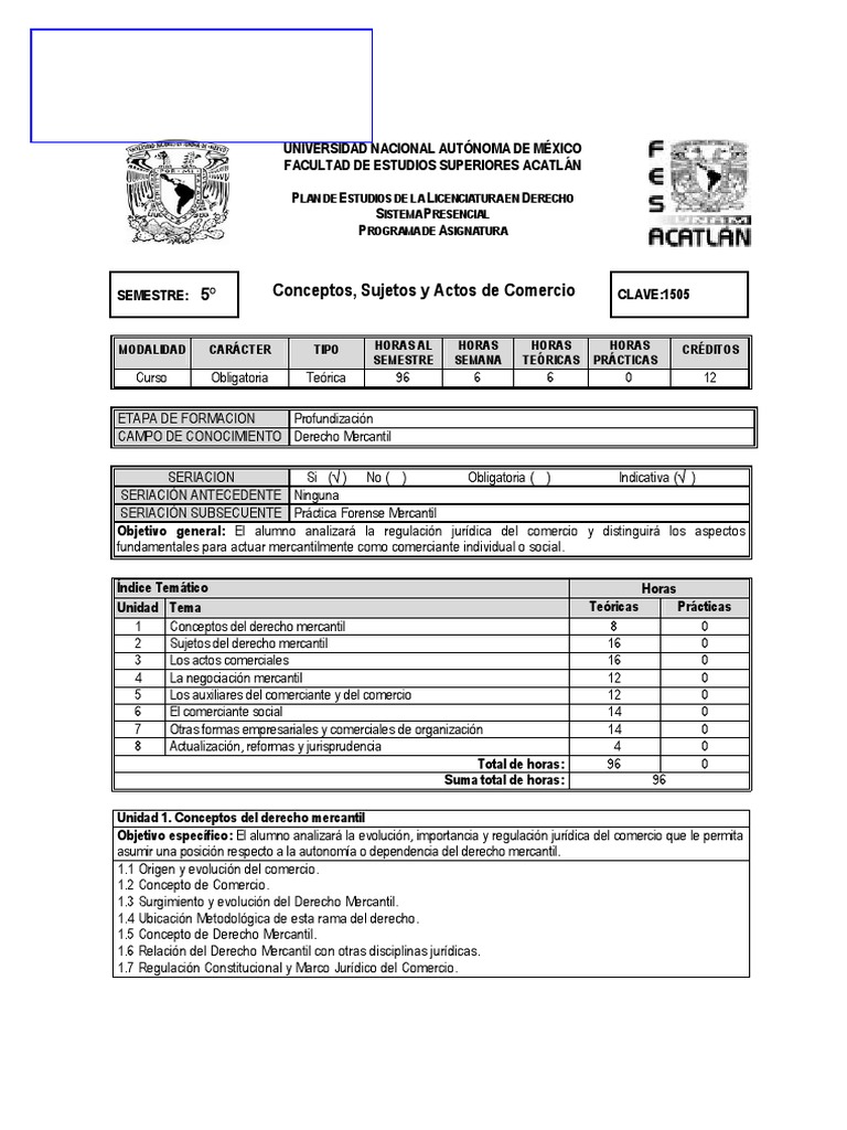 Objetivo general: El alumno analizar la regulacin jurdica del comercio y distinguir los aspectos