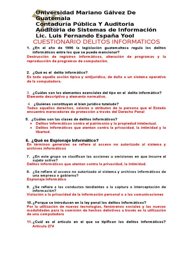 14. Mencione 3 leyes de Guatemala relacionadas a los Delitos Informticos.