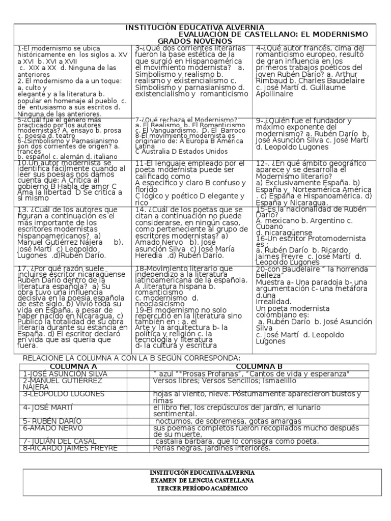 EVALUACIN DE CASTELLANO: EL MODERNISMO
