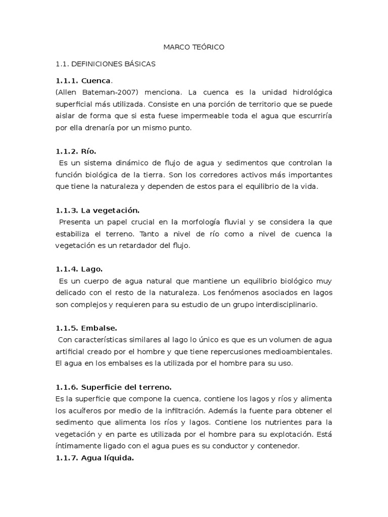 (Allen Bateman-2007) menciona. La cuenca es la unidad hidrolgica