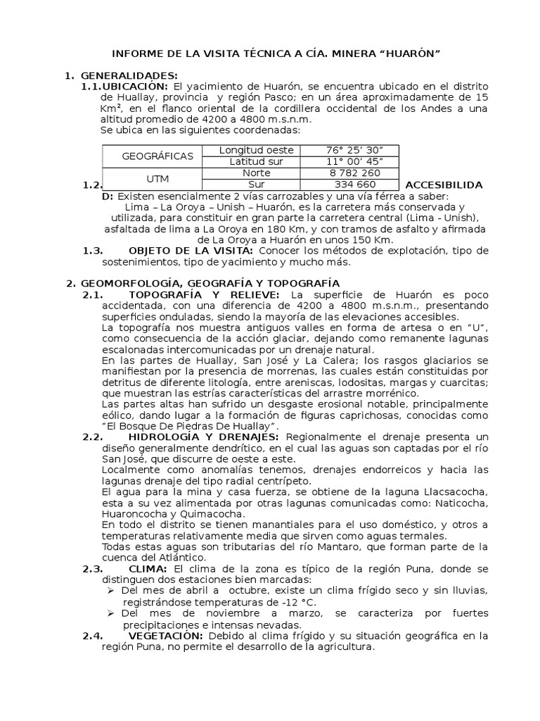 1.1.UBICACIN: El yacimiento de Huarn, se encuentra ubicado en el distrito