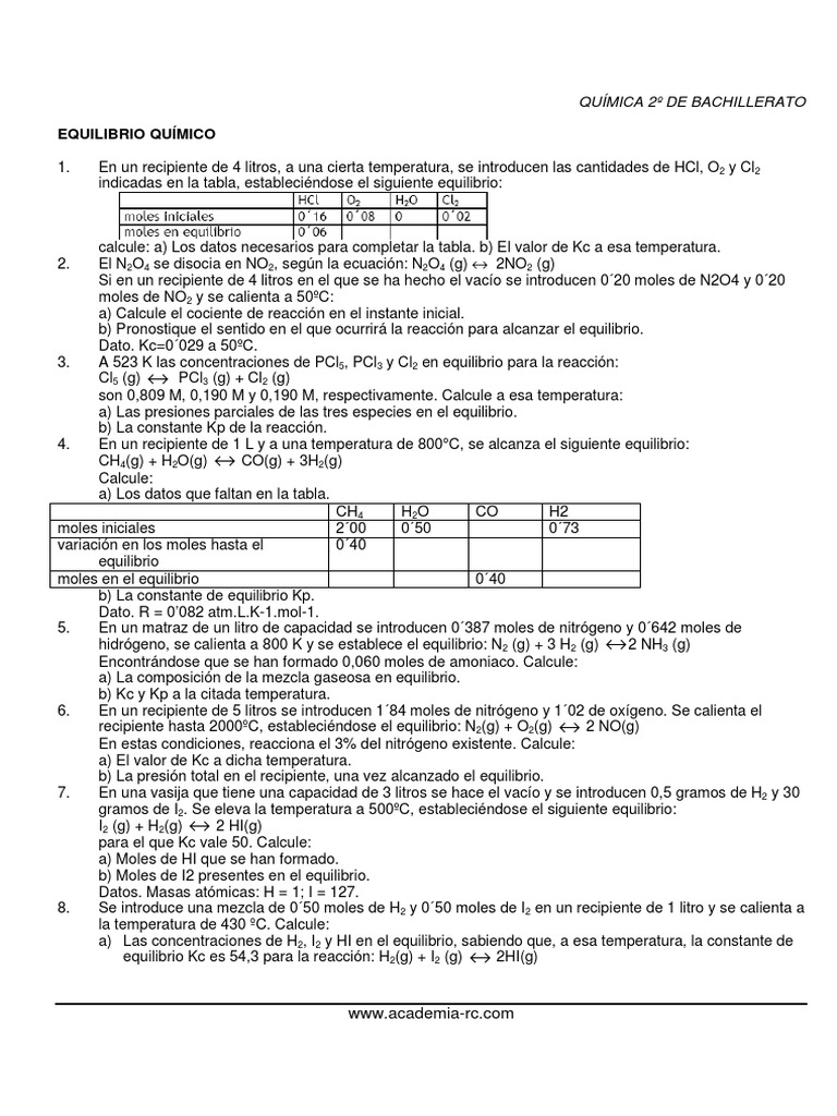 indicadas en la tabla, establecindose el siguiente equilibrio: